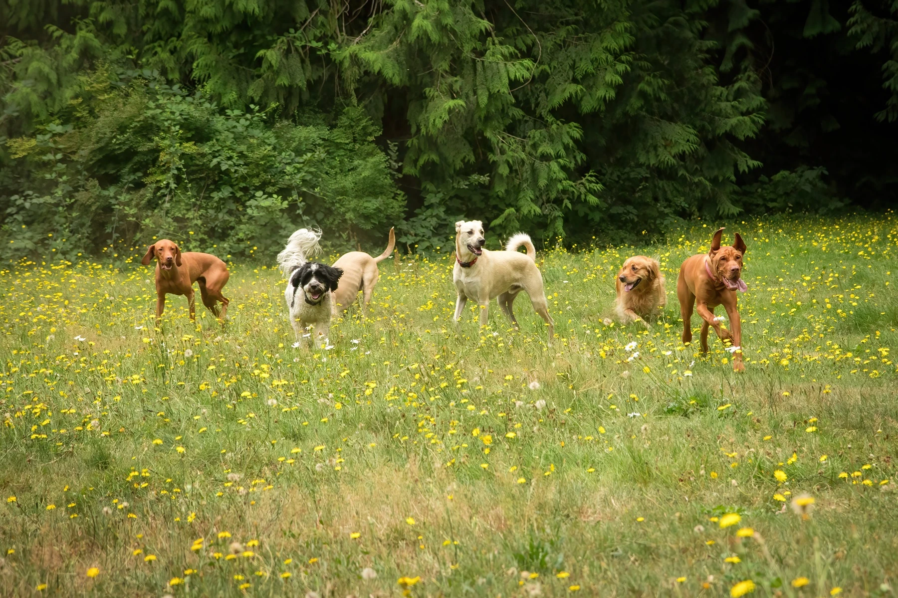 A happy dog is an active dog! Our daily schedule includes off-leash play sessions, nature walks, and space to explore. This is ideal for dog breeds with excess energy, helping them stay healthy and engaged. We also offer a swimming pond and other calm activities for dogs who prefer a more relaxed experience.